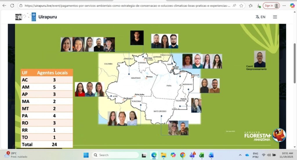 O assessor técnico do Projeto Floresta+ Amazônia pelo PNUD, Pedro Bernardino, reforçou o papel do projeto na construção de um mecanismo robusto e inclusivo. “O Projeto Floresta+ Amazônia não é apenas um programa de pagamento; é um reconhecimento prático de que a conservação da floresta em pé é um serviço essencial para o planeta. Nosso foco é garantir que os provedores de serviços ambientais, que estão na linha de frente da proteção, tenham acesso a um mecanismo de remuneração justo e eficaz. É a valorização do guardião da floresta”, afirmou