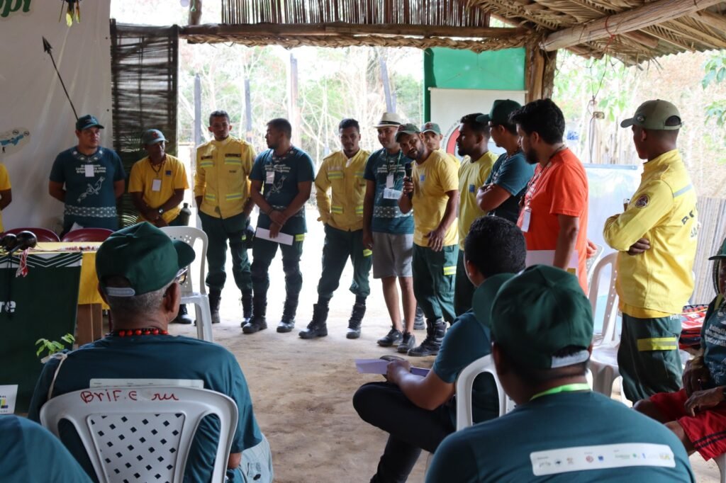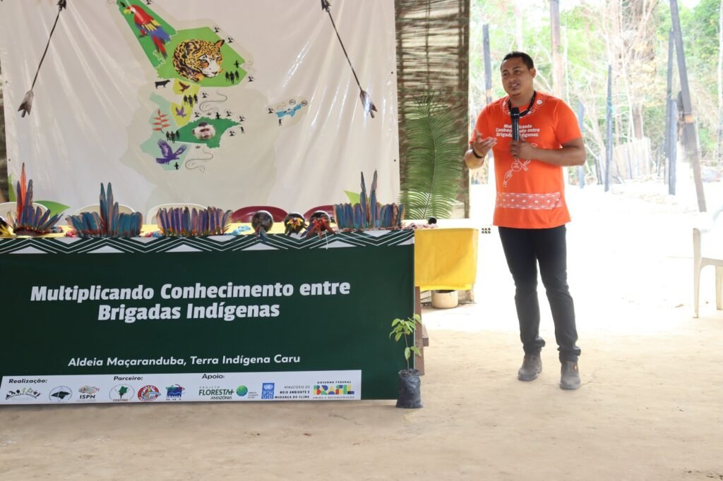 Essa visão guia o projeto da Associação Wirazu, uma das apoiadas pela chamada da Modalidade Comunidades do Projeto Floresta+ Amazônia. Realizado em parceria com o Instituto Sociedade, População e Natureza (ISPN), o projeto local impulsionou as brigadas indígenas para a prevenção e combate ao fogo na região, resultando em equipamentos, formações e troca de conhecimentos. “A gente está se readaptando nesse novo mundo tecnológico para cuidar do território, hoje temos as tecnologias a nosso favor”, afirmou João Guajajara.
