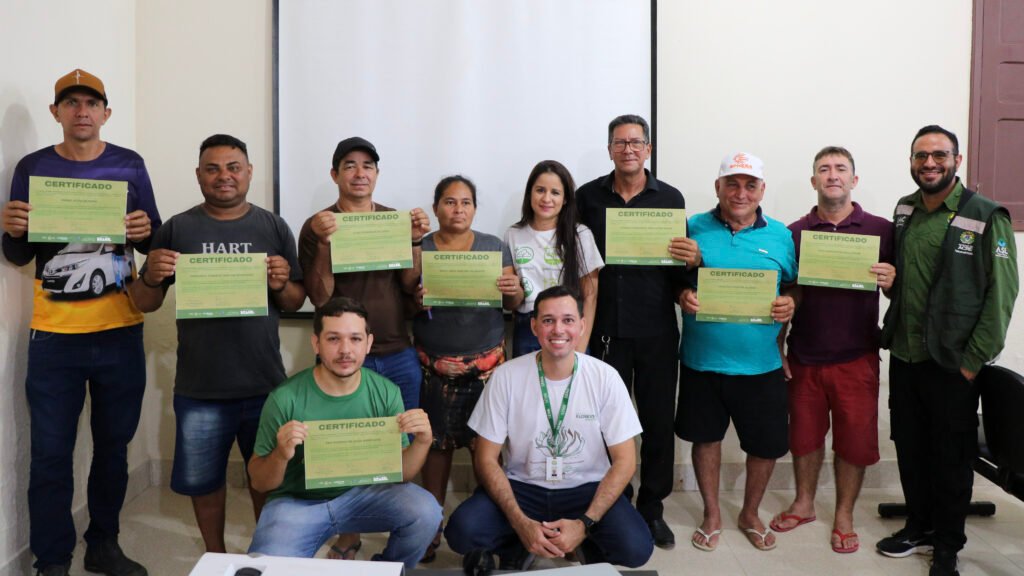 Agricultores celebram a renda gerada pela floresta em pé – A entrega de certificados aos novos provedores de serviços ambientais marcou o mutirão. Em Feijó, 15 agricultores familiares receberam o reconhecimento, entre eles Edu Rodrigo Rodrigues, que relembra a desconfiança inicial quando ouviu falar do projeto. “Achei que não ia dar certo. Meu pai achou ainda mais estranho, mas me incentivou. Graças a Deus deu tudo certo”, celebra.
